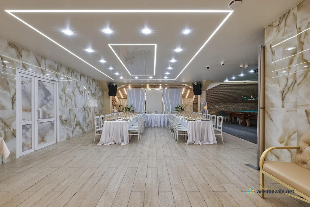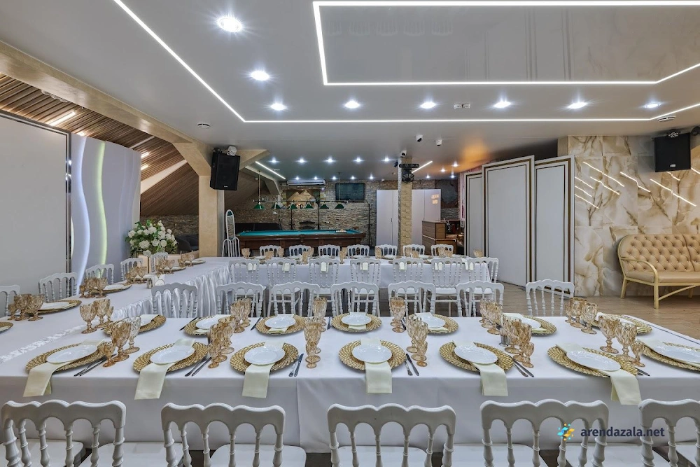 В этом просторном зале с уютной обстановкой гостей ждет живая музыка, вкусные блюда на любой вкус, быстрое и качественное обслуживание вежливого персонала. Здесь можно воспользоваться скидками, принести свои напитки и насладиться добродушной атмосферой. Ведущие организуют интересные развлекательные программы с конкурсами, создавая веселое настроение. Зал идеально подходит для проведения торжественных мероприятий и банкетов благодаря просторному помещению и профессиональному обслуживанию официантов.