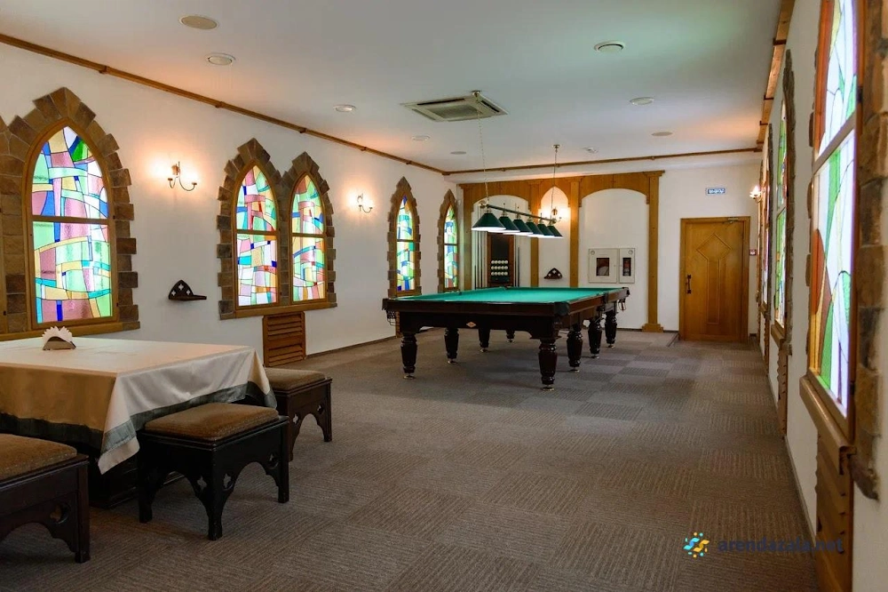 Это стильный бильярдный зал, выполненный в средневековом стиле, где гостей ожидают просторные залы, квалифицированный и вежливый персонал, готовый помочь с любым вопросом. Здесь можно не только поиграть в бильярд, но и отдохнуть в уютной атмосфере, наслаждаясь профессиональным обслуживанием. Хотя меню ресторана может быть не идеальным, главной изюминкой заведения остается его аутентичный интерьер и дружелюбный подход к посетителям.