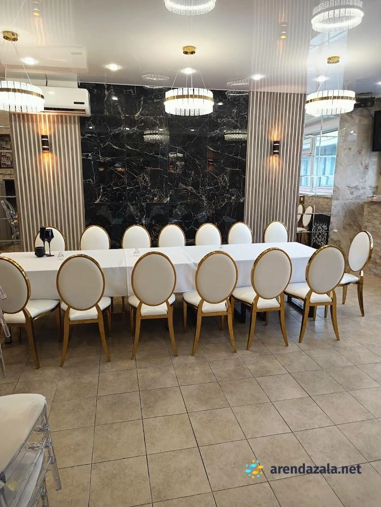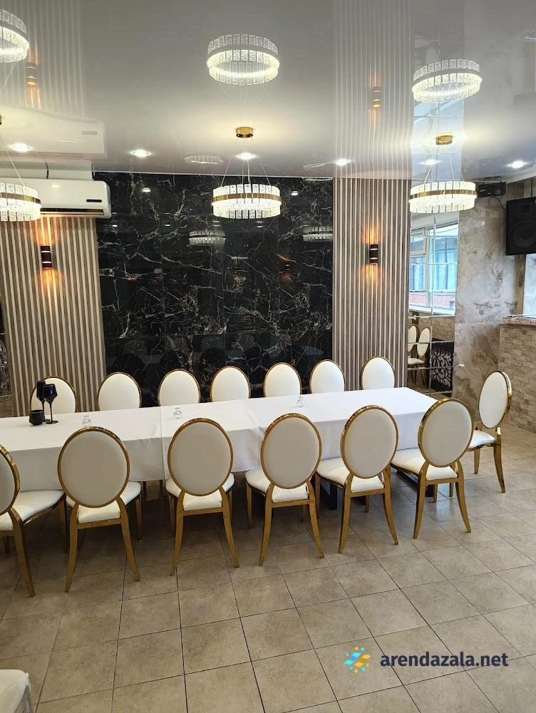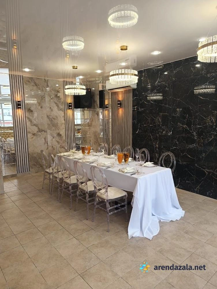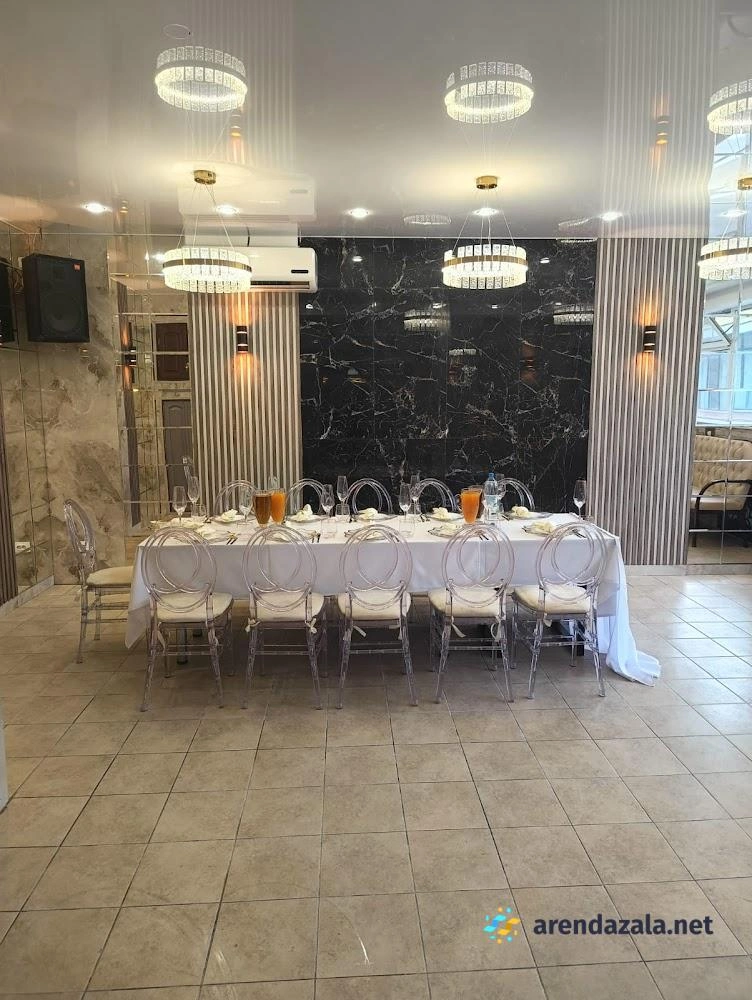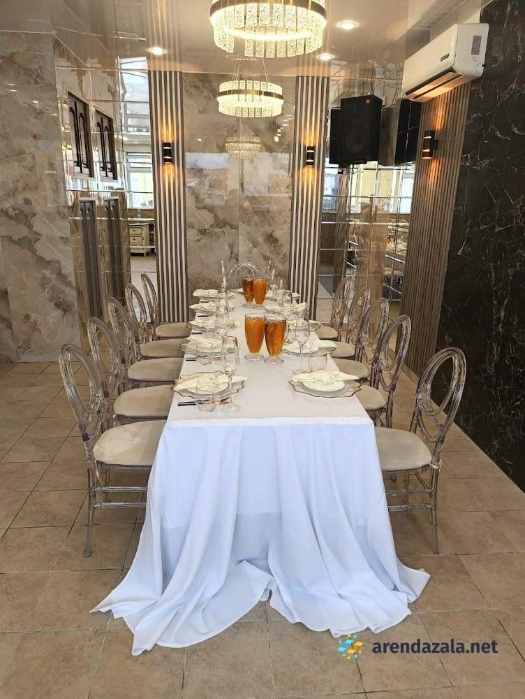Банкетный зал отличается прекрасным интерьером, создающим сказочную атмосферу роскоши и стиля. Помещение идеально приспособлено для проведения свадеб и других торжеств, включая летнюю веранду для регистрации на свежем воздухе, зону welcome с фуршетом, детскую комнату и кальян-бар. Потрясающая световая система с возможностью затемнения и клубным освещением придает пространству модную атмосферу. Высокопрофессиональный персонал обеспечивает безупречный сервис, а изысканное меню из свежих ингредиентов, включая шоу шеф-повара, гарантирует кулинарное наслаждение по выгодному соотношению цена/качество.