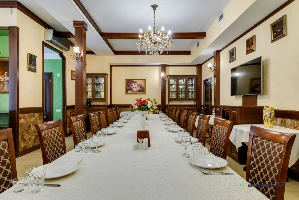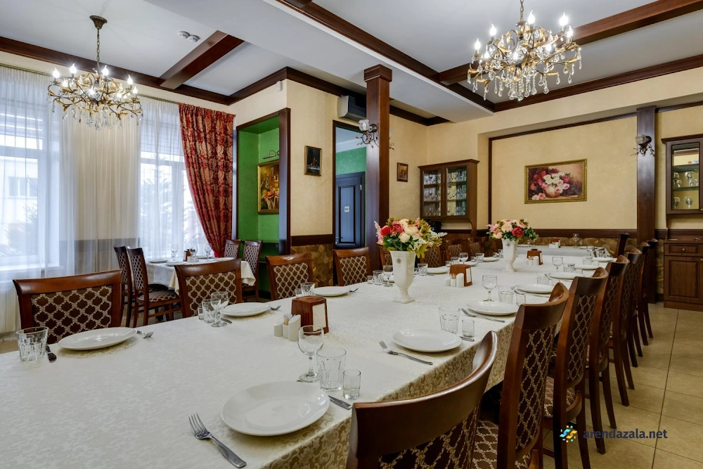 В уютном банкетном зале царит атмосфера гостеприимства и радушия. Здесь можно насладиться изысканными блюдами из шикарного ассортимента меню, приготовленными с любовью и мастерством. Салаты восхитительны, а каждое кушанье отличается безупречным вкусом. Высокий уровень обслуживания, доброжелательный и вежливый персонал создают неповторимую атмосферу, располагающую к приятному времяпрепровождению. Доступные цены позволяют каждому гостю почувствовать себя желанным и окруженным вниманием.