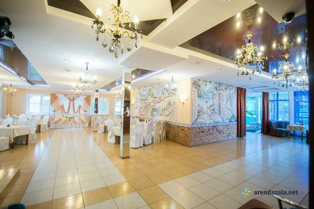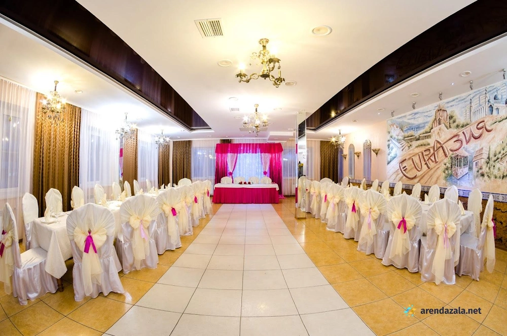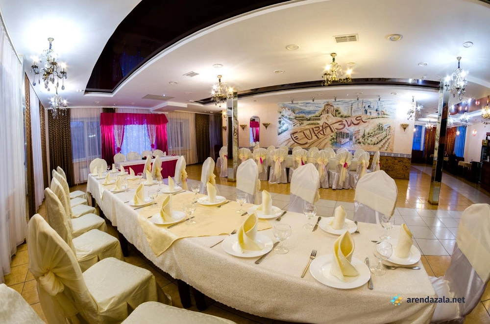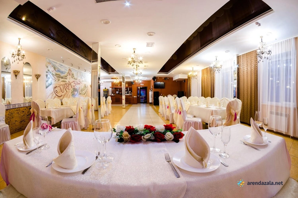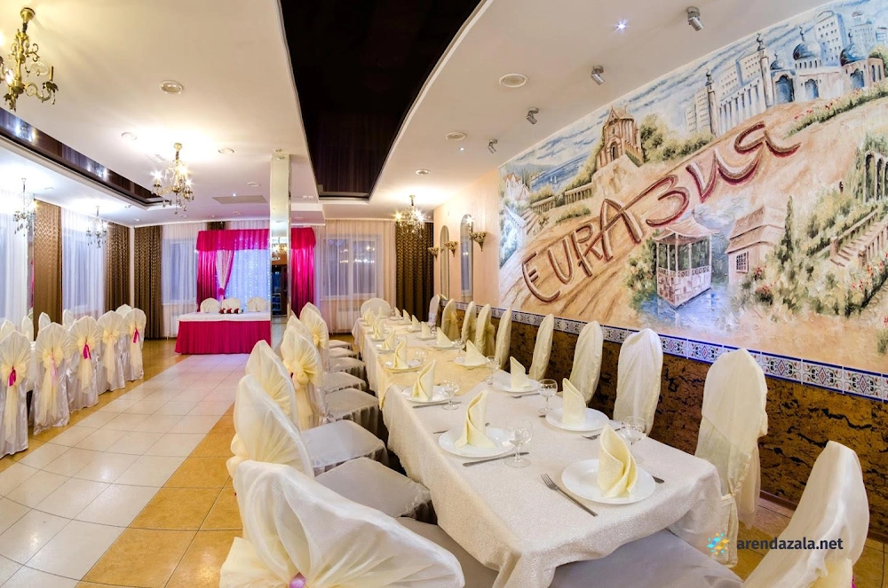 "Евразия" - зал на 150 человек, который радушно встречает гостей уютной атмосферой и безупречным сервисом. Посетители восхищаются вкусными блюдами, приготовленными из свежих ингредиентов, особенно отмечая божественную щуку и нежное мясо, тающее во рту. Просторный и стильно оформленный зал с фотозоной идеально подходит для проведения банкетов и торжеств, а оперативный и приветливый персонал гарантирует, что каждое мероприятие пройдет на высшем уровне. Помещение располагает современным оборудованием, позволяющим гостям наслаждаться музыкой и караоке в непринужденной обстановке.
